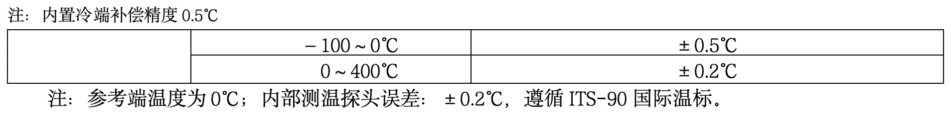 l 熱電偶測量和輸出提供內(nèi)置、外置和手動3種冷端溫度補(bǔ)償方式,其中外置參考端采用A級Pt100鉑電阻;